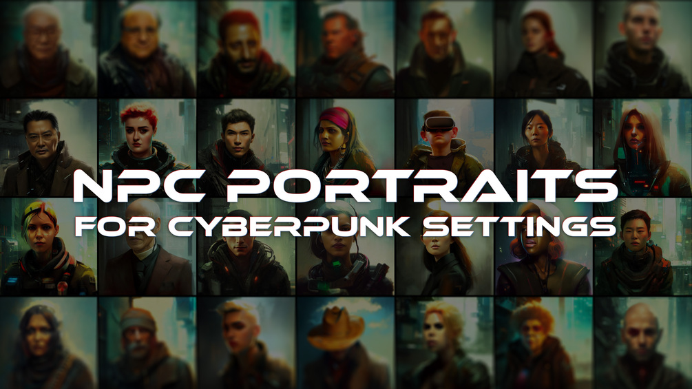 You'll get 65 portraits of characters your players might encounter in a Cyberpunk city setting.